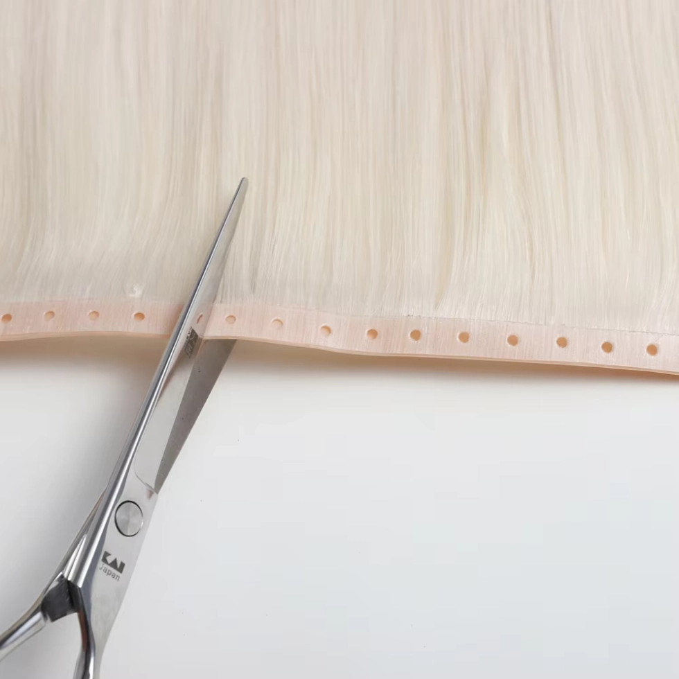 Trin 3: Installer med præcision Placer Butterfly Wefts langs ankerrækkerne, og flugt dem med det naturlige fald af klientens hår. Brug kontrolleret spænding til at sikre skudene via perlekanalen – overstramning fører til irritation af hovedbunden, så find det søde sted mellem sikkerhed og komfort. Trim skudene efter behov, så de passer til hovedets krumning, og fold kanterne for at undgå at flosse.