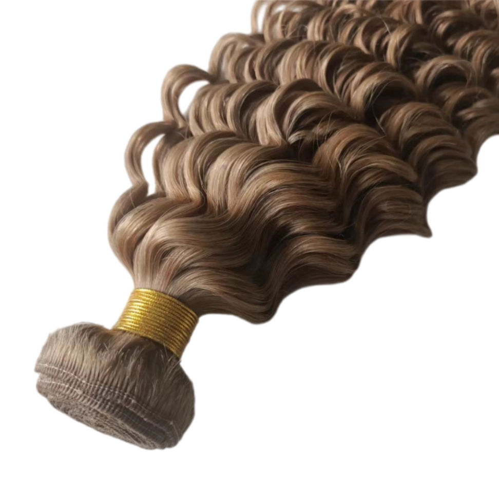 Deep Wave Curly hair extensions forbliver et topvalg på markedet, og deep wave er en af ​​de mest populære styles. Den har klare, konsistente spiralkrøller, der holder deres form godt, og tilbyder en afbalanceret tekstur mellem kropsbølge og kinky krøllet. Med medium volumen, der ikke er alt for tung, fungerer denne alsidige bølge til både afslappede daglige looks og mere formelle, polerede frisurer. Ideel til dem, der ønsker hoppende, langtidsholdbare krøller med masser af dimension. Deep wave vævning er perfekt til salonkunder og slutbrugere, der ønsker at skabe glamourøse, flydende krøllede stilarter med stærk krøllefastholdelse.