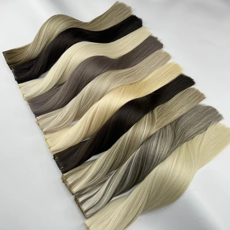 Genius Weft, en avanceret hårforlængelseteknik, bruges til at forlænge og tykkere hår. Den kombinerer det naturlige udseende af håndvævede hårstænger med holdbarheden af ​​maskinvævede skud. Kort sagt, vores genanvendelige Genius Hair Extensions har fire kernefunktioner: